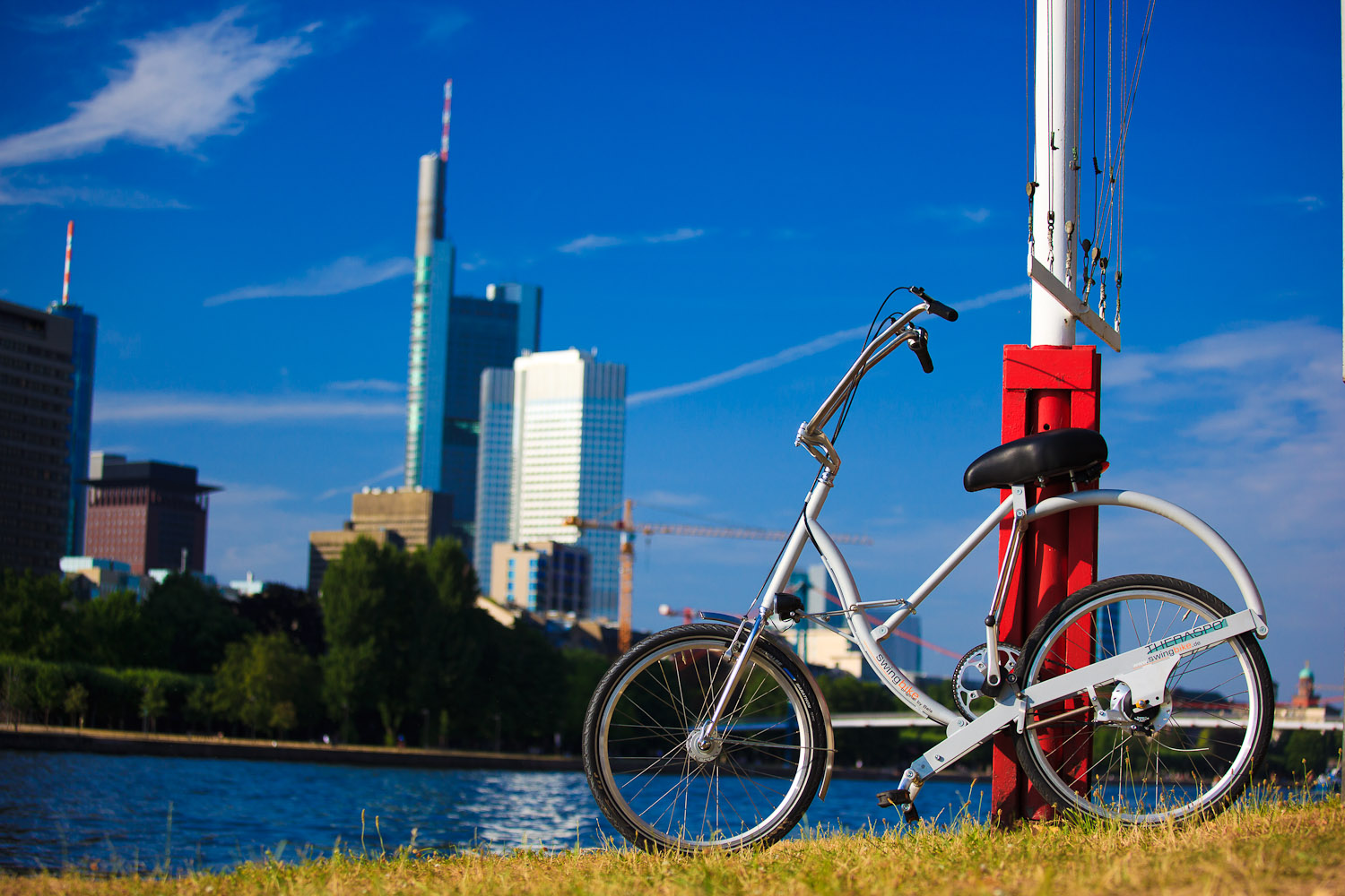 Swingbike in Großstädten auf den sehr gut ausgebauten Radwegen am Ufer